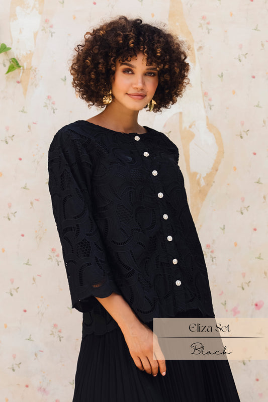 Eliza Pleats Skirt Set: Black