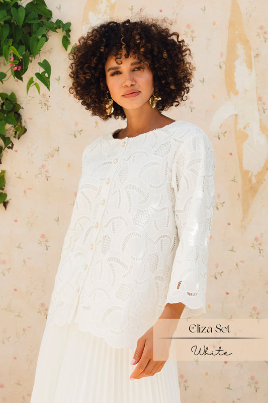Eliza Pleats Skirt Set: White